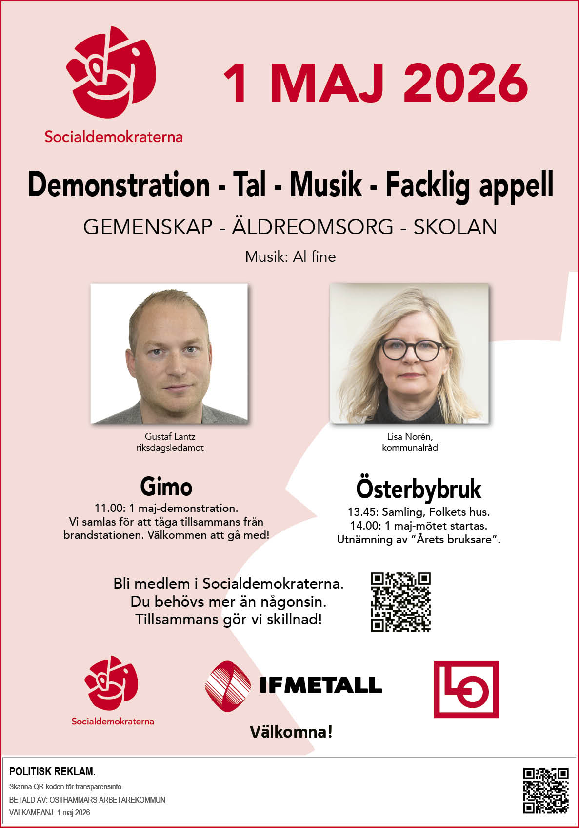 Östhammars kommun behöver ett nytt politiskt ledarskap. En politik som sätter skolan, omsorgen och gemenskapen före skattesänkningar och besparingskrav.